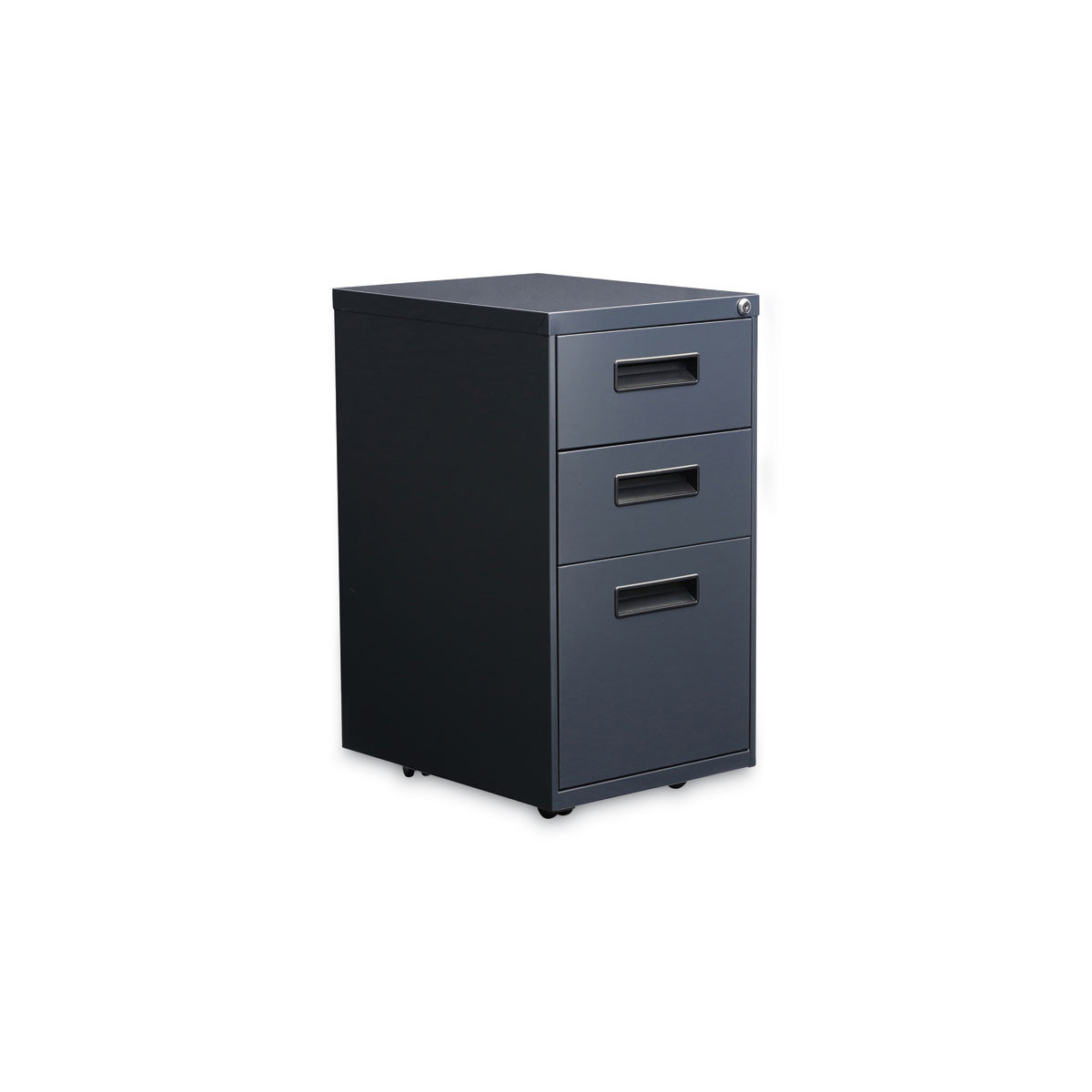 Get organized with a high-sided file cabinet with drawers that accommodate letter or legal-size filing. The counterweight prevents tipping. Visible, easy-access casters, two locking, two non-locking. Steel ball bearing slide suspension helps drawers glide smoothly and with ease. Built with 3/4 extension on box drawers and full-length extension on file drawers for maximum accessibility. Full-length pull permits easy opening. Box drawers include one divider and pencil tray.