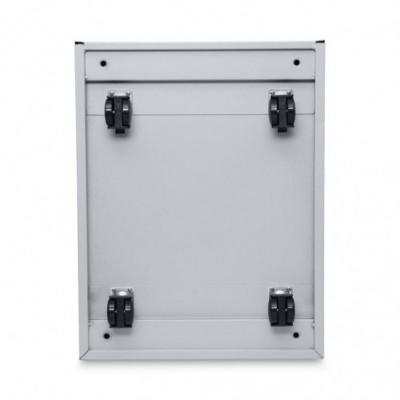 High-sided file cabinet for letter or legal-size filing. Counterweight prevents tipping. Visible, easy-access casters, two locking. Steel ball bearing slide suspension helps drawers glide smoothly and with ease. 3/4 extension on box drawers and full-length extension on file drawers for maximum accessibility. Full-length pull. Box drawers include one divider and pencil tray.