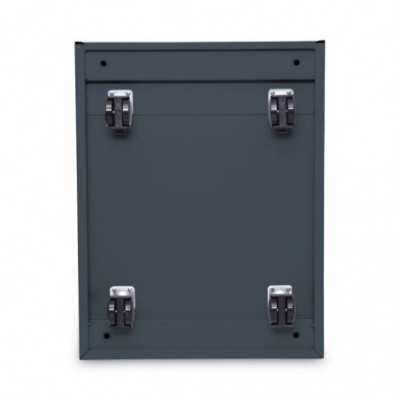 High-sided file cabinet for letter or legal-size filing. Counterweight prevents tipping. Visible, easy-access casters, two locking. Steel ball bearing slide suspension helps drawers glide smoothly and with ease. 3/4 extension on box drawers and full-length extension on file drawers for maximum accessibility. Full-length pull. Box drawers include one divider and pencil tray.
