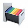 High-sided file cabinet for letter or legal-size filing. Counterweight prevents tipping. Visible, easy-access casters, two locking. Steel ball bearing slide suspension helps drawers glide smoothly and with ease. 3/4 extension on box drawers and full-length extension on file drawers for maximum accessibility. Full-length pull. Box drawers include one divider and pencil tray.