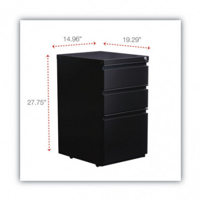 File Pedestal with Full-Length Pull, Left or Right, 3-Drawers: Box/Box/File, Legal/Letter, Black, 14.96" x 19.29" x 27.75"