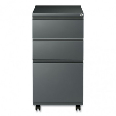 File Pedestal with Full-Length Pull, Left or Right, 3-Drawers: Box/Box/File, Legal/Letter, Charcoal, 14.96" x 19.29" x 27.75"