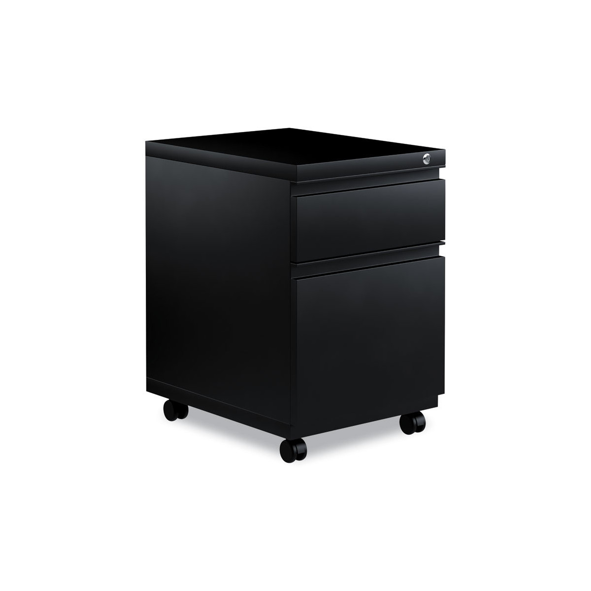 Get organized with a high-sided file cabinet with drawers that accommodate letter or legal-sized hanging files. Steel ball bearing telescoping slide suspension helps drawers glide smoothly and with ease. The counterweight prevents tipping. Equipped with four casters, two locking, two non-locking. Full-length pull permits easy opening. Single key core removable lock with two keys. Durable powder coated finish helps prevent scratches.
