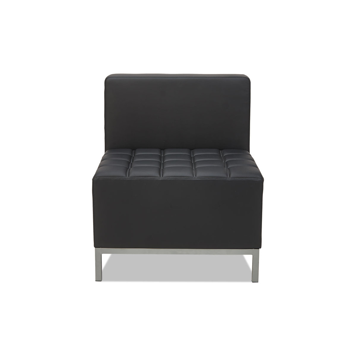 This sectional delivers sleek, contemporary style with modular flexibility to match any reception, lounge or waiting space. Featuring tufted cushions with straight backs and arms, it blends comfort and modern design effortlessly. Pair corner, armless and ottoman components to craft endless layouts. Silver steel frames and legs adds style.