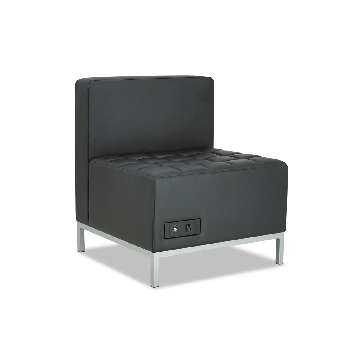 This sectional delivers sleek, contemporary style with modular flexibility to match any reception, lounge or waiting space. Featuring tufted cushions with straight backs and arms, it blends comfort and modern design effortlessly. Pair corner, armless and ottoman components to craft endless layouts. Silver steel frames and legs adds style.