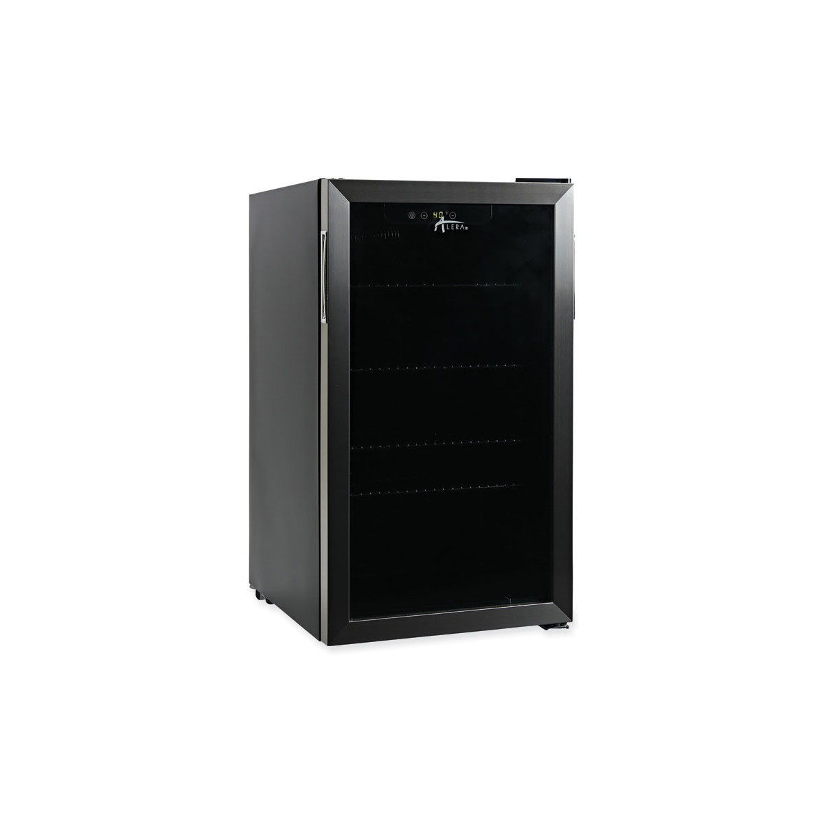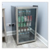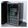 Sleek, stainless steel beverage cooler keeps beverages cool and easily available. Convenient triple layer glass front door is frost-free, to better showcase drink choices. Convenient cooler provides plenty of storage, with three adjustable shelves. Holds up to 120 cans. Reversible doors can be installed left or right to fit any configuration. Comes with full-range temperature control and interior light. Quiet, low-energy consumption refrigerator/cooler is perfect in any space. Leveling glides help compensate for uneven floors. Flush back design conceals components and allows a seamless fit in tight spaces.
