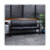 Sleek and modern style reception sofa makes a great stand-alone piece or as a grouping when configured with chairs, benches, and tables to create reception, lounge, conference, or waiting rooms. Attractive wood frame that wipes clean. A thick, cushioned seat and back perfect for dividing seating areas and keeping visitors appropriately distanced from one another. Leveling glides compensate for uneven floors.