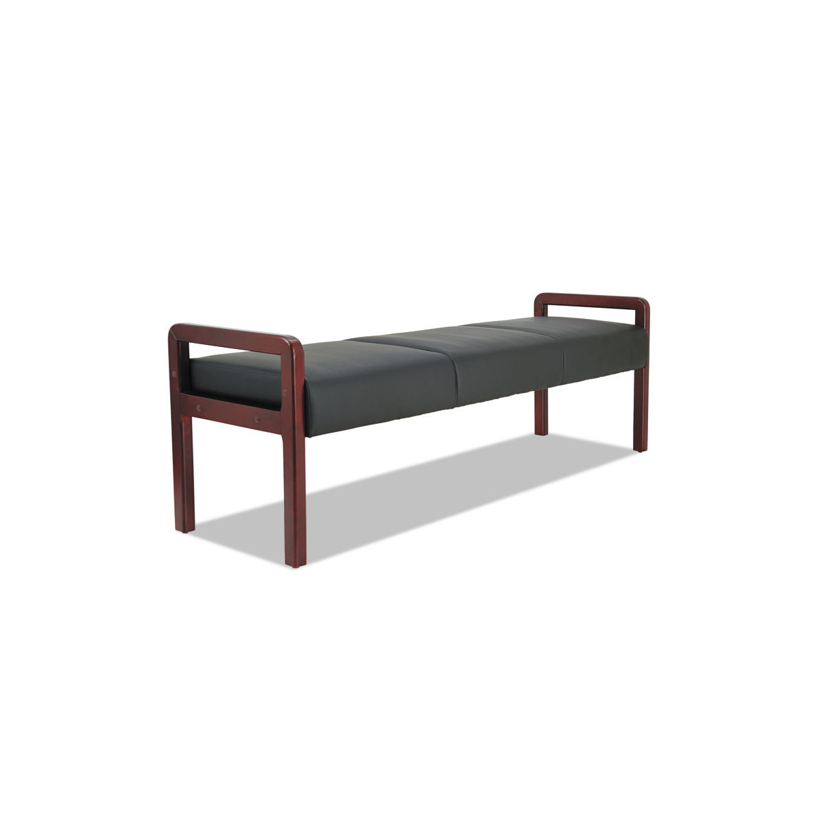 The Alera® reception lounge bench offers versatile, modular seating ideal for reception, lounge, conference or waiting areas. Its elegant mahogany wood frame is upholstered in soft, easy-care bonded leather and richly padded for generous comfort. Leveling glides ensure stability across uneven flooring. Perfect for arranging sofas, chairs, benches, and tables to create tailored layouts that blend style, comfort and professionalism.
