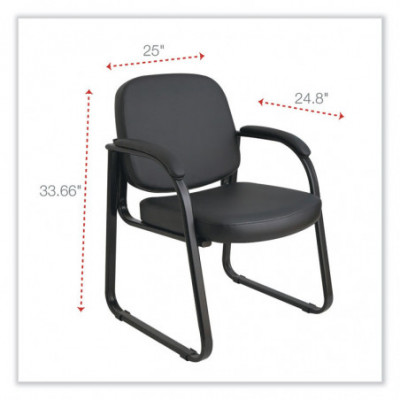 Clean, classic lines add comfortable seating to complement any office environment. Use multiple chairs in a configuration to create reception, lounge, conference, and waiting rooms. The thickly padded cushion provides maximum comfort. Constructed from durable upholstery that is designed to withstand everyday use. Padded armrests for soft support. Sturdy steel sled base is designed to keep chair and occupant in place.