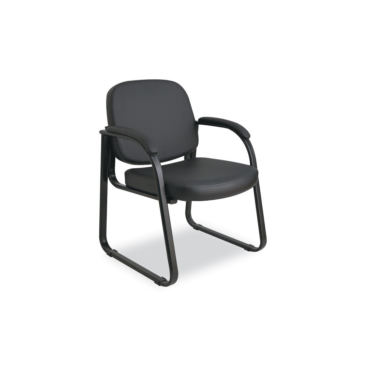 Clean, classic lines add comfortable seating to complement any office environment. Use multiple chairs in a configuration to create reception, lounge, conference, and waiting rooms. The thickly padded cushion provides maximum comfort. Constructed from durable upholstery that is designed to withstand everyday use. Padded armrests for soft support. Sturdy steel sled base is designed to keep chair and occupant in place.