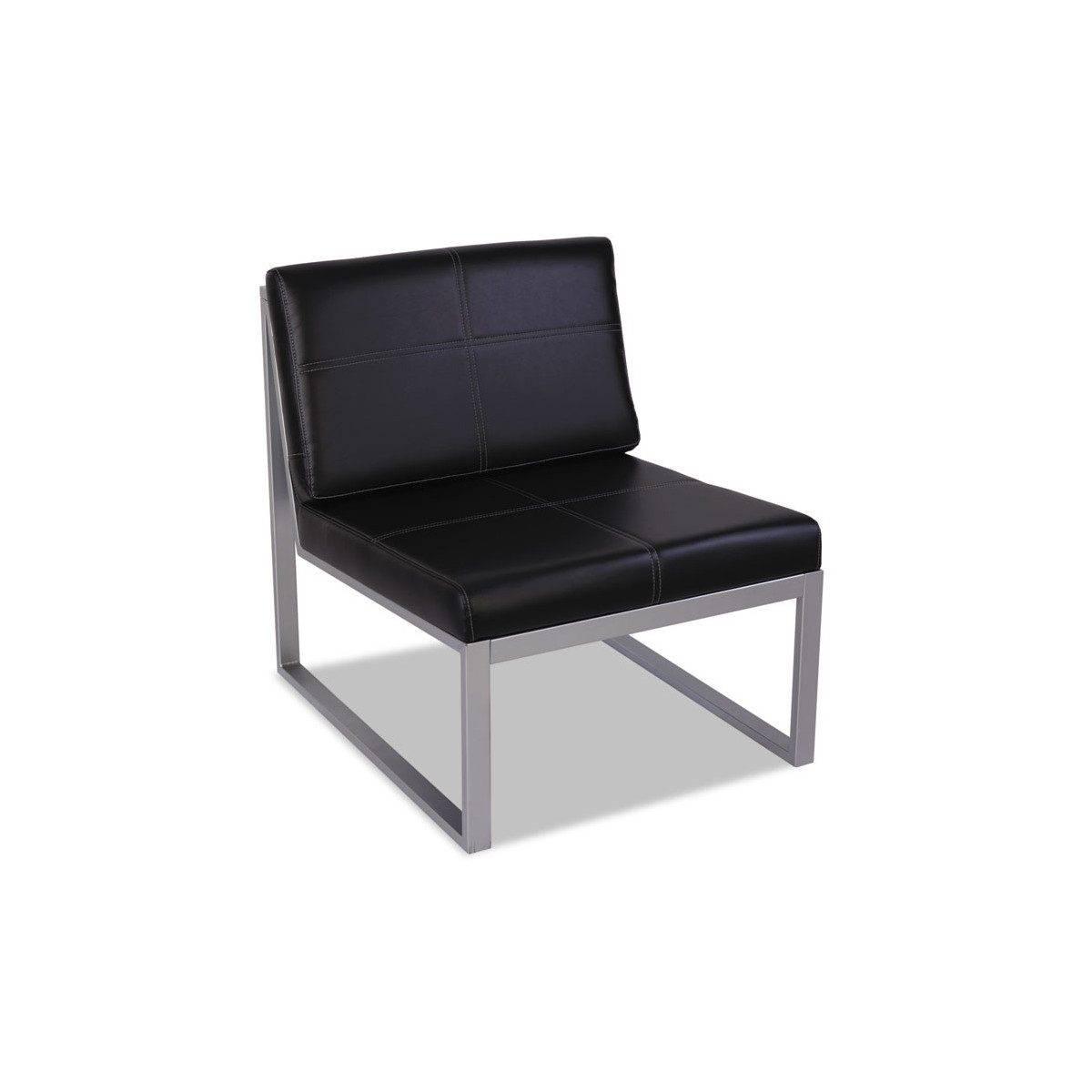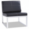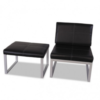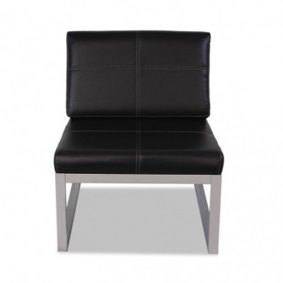 Contemporary geometric styling in soft durable bonded leather. Modular armless design allows multiple chairs to be configured to create layouts that work in any room. Configure with ottomans suitable as side tables, coffee tables, or just to kick your legs up. Heavy-duty silver steel structure withstands constant use and movement.