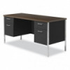 Solid and stable desk with square edge laminated top that is scratch and stain-resistant. Built with a durable, powder-coated steel frame with chrome-plated 1" square tubular steel legs. Includes a full extension, locking file drawer with telescoping ball bearing slides to accommodate hanging file folders. Box drawer operates on steel roller suspensions. Aluminum drawer handles. Three-quarter height modesty panel provides privacy. Leveling glides adjust for uneven floors. Center drawer solid separately.