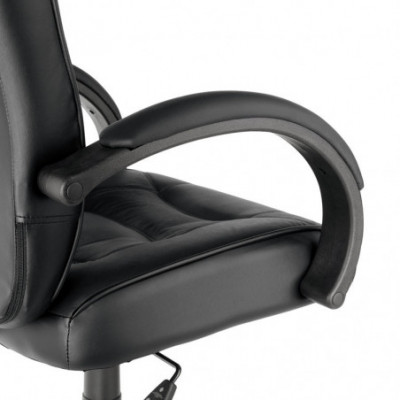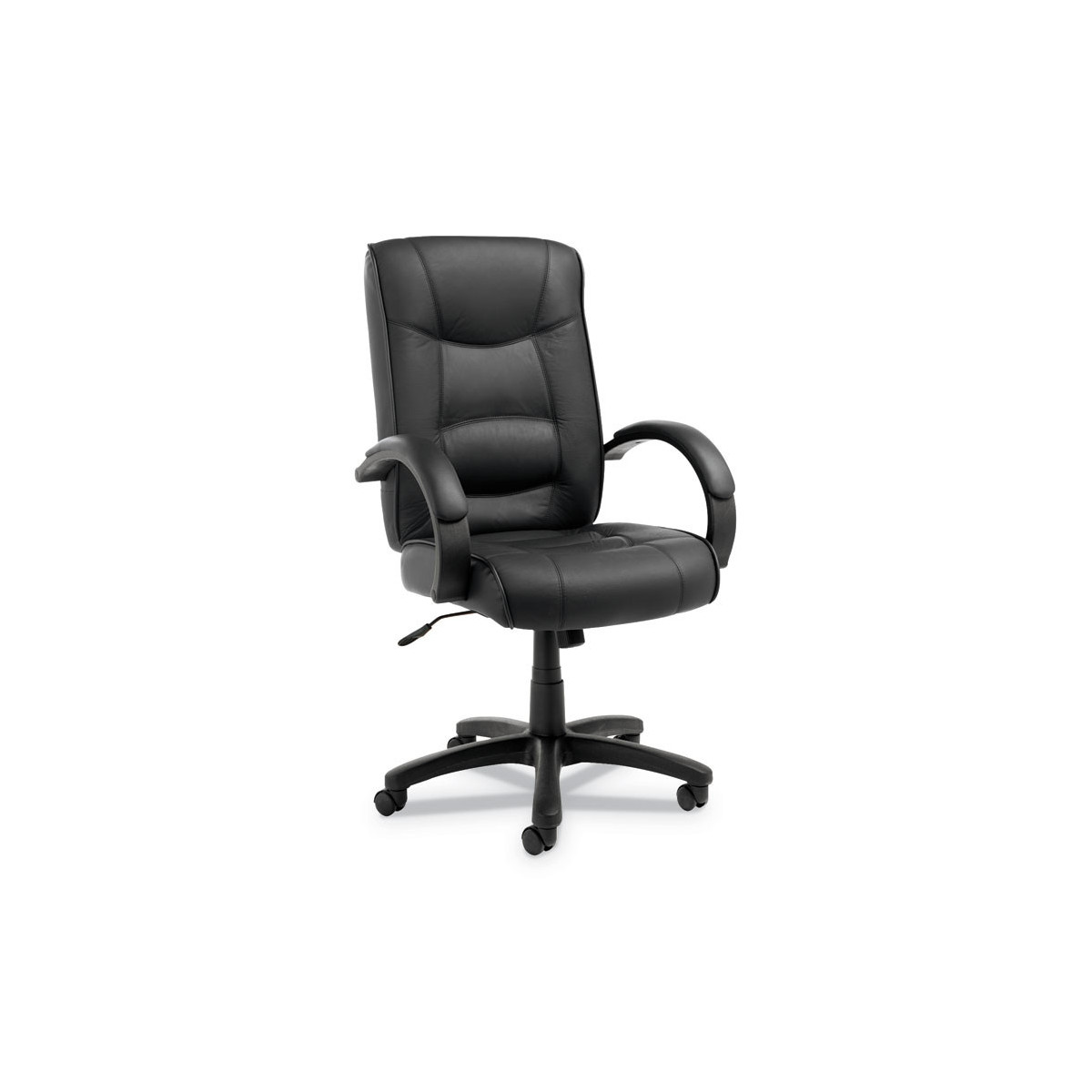 Sink into this luxurious high-back chair for all-day office comfort. Tailored seat and back with top-grain leather upholstery. Waterfall seat design reduces pressure at the back of your knees for improved circulation. Roll armrests feature padded leather caps for added comfort. Heavy-duty nylon base has dual-wheel casters for easy mobility.
