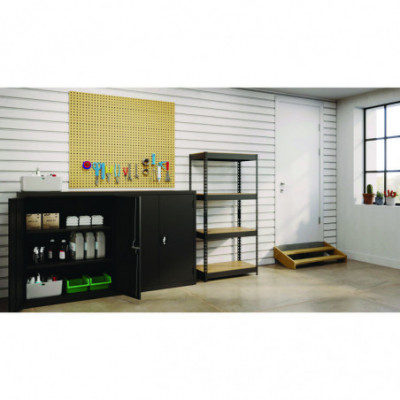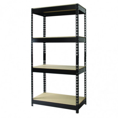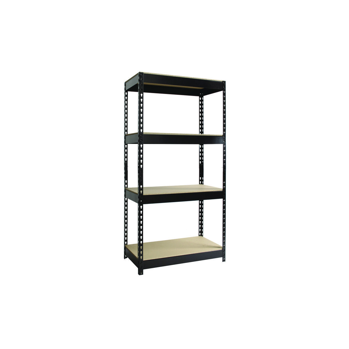 Designed for heavy-duty use. The boltless design allows for quick and easy assembly. The powder-coated finish is rust resistant and durable. The shelving unit can be assembled either horizontally or vertically, depending on your storage needs. Each unit includes rugged particle-board shelves. Assemble with a rubber mallet in less than 30 minutes.