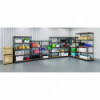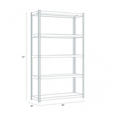 Designed for heavy-duty use, this shelving unit assembles in minutes with no bolts required due to its slide-together design requiring just a rubber mallet. Its powder-coated steel finish resists rust and holds up in demanding environments. Rugged particle-board shelves drop securely into place and adjust in 1.5" increments to accommodate items of varying heights. Configure the unit horizontally or vertically to meet evolving storage needs.