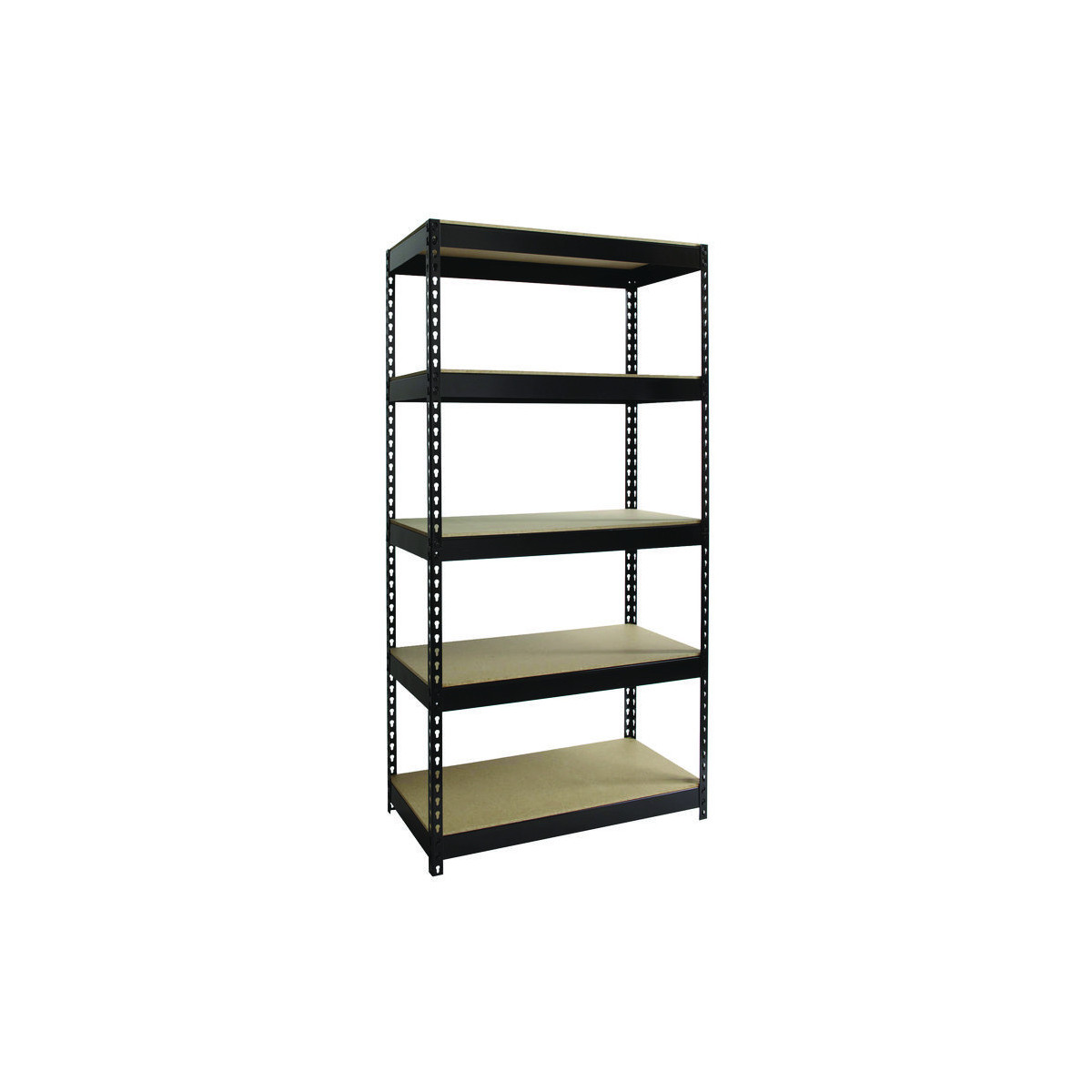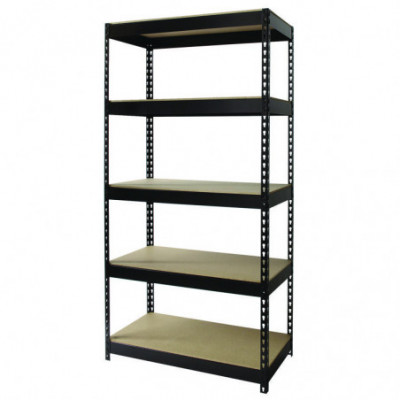 Designed for heavy-duty use. The boltless design allows for quick and easy assembly. The powder-coated finish is rust resistant and durable. The shelving unit can be assembled either horizontally or vertically, depending on your storage needs. Each unit includes rugged particle-board shelves. Assemble with a rubber mallet in less than 30 minutes.