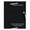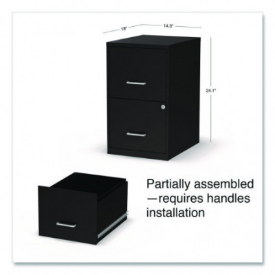 Organize your home or professional workspace with the 2-Drawer vertical file cabinet. Keep all your letter-sized documents secure and tucked away in two 18" depth drawers. This file cabinet comes equipped with one factory installed lock and key, controlling both drawers for peace of mind and security. The sleek finish and polished handles keep your office space looking contemporary and organized.