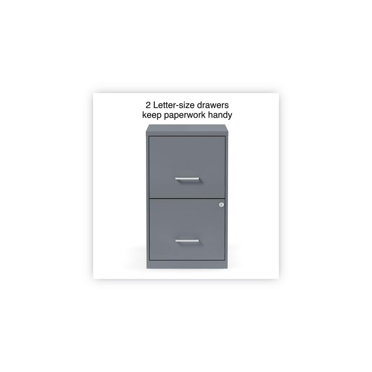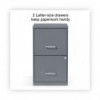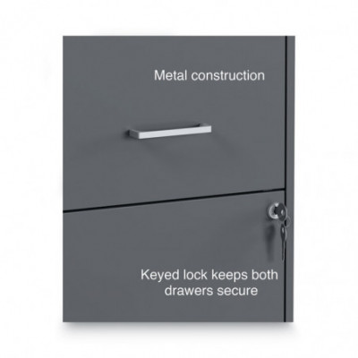 Organize your home or professional workspace with the 2-Drawer vertical file cabinet. Keep all your letter-sized documents secure and tucked away in two 18" depth drawers. This file cabinet comes equipped with one factory installed lock and key, controlling both drawers for peace of mind and security. The sleek finish and polished handles keep your office space looking contemporary and organized.