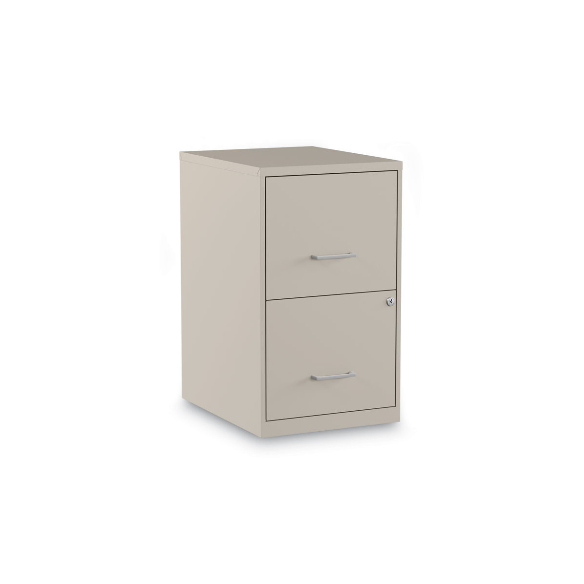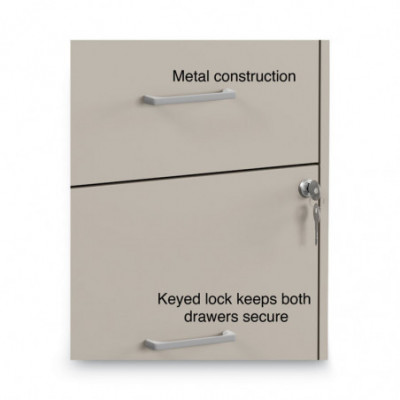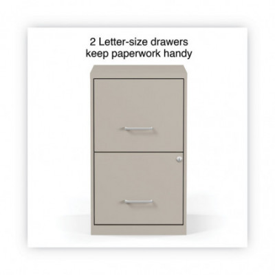Organize your home or professional workspace with the 2-Drawer vertical file cabinet. Keep all your letter-sized documents secure and tucked away in two 18" depth drawers. This file cabinet comes equipped with one factory installed lock and key, controlling both drawers for peace of mind and security. The sleek finish and polished handles keep your office space looking contemporary and organized.