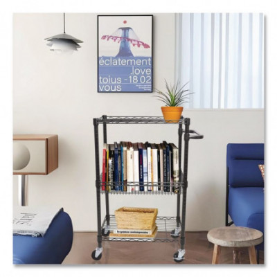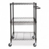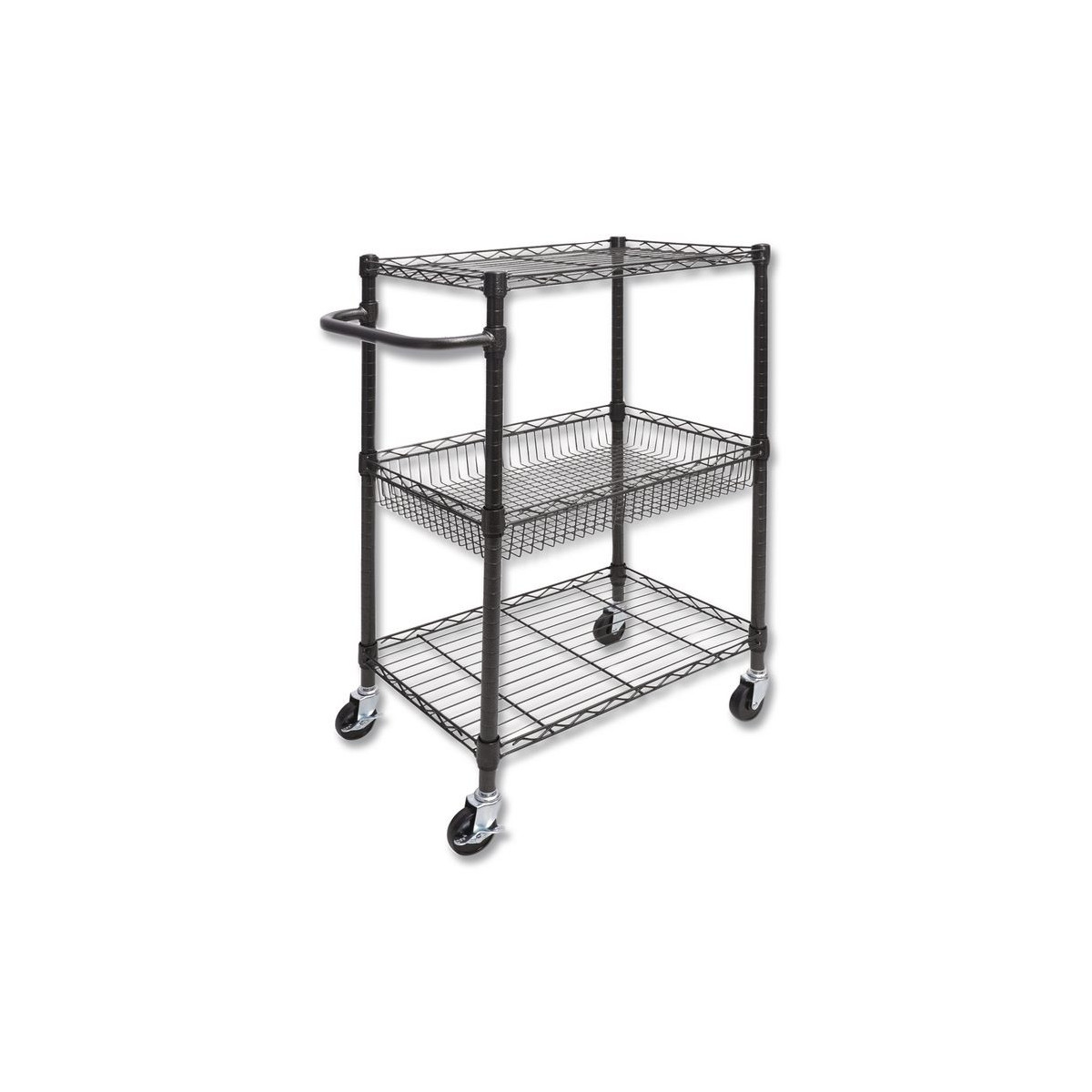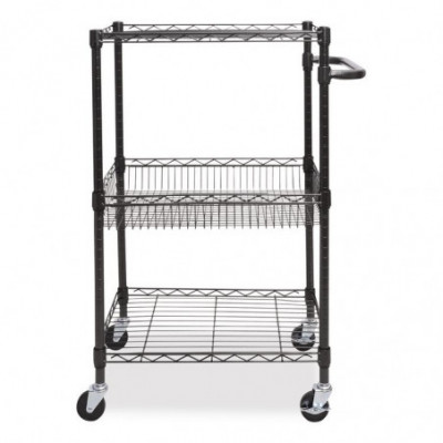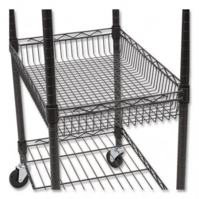 Sturdy and solid wire cart for mobile shelving needs. Includes four casters (two locking). Black Anthracite finish for wet and dry usages. Shelves and baskets adjust in 1" increments. 500 lbs. total weight capacity. Easy to assemble- no tools required.
