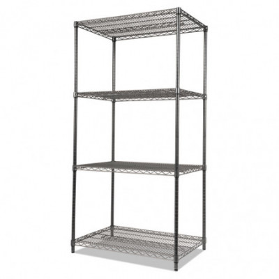 Wire Shelving Starter Kit, Four-Shelf, 36w x 18d x 72h, Black Anthracite