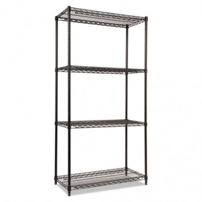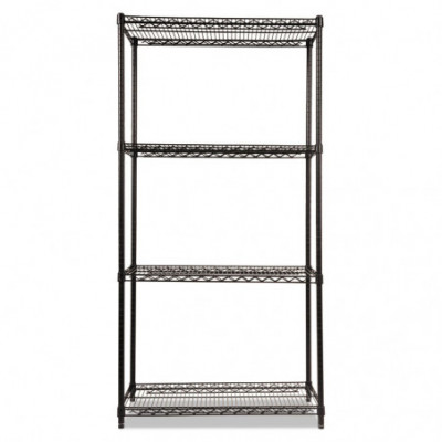 NSF Certified Industrial Four-Shelf Wire Shelving Kit, 36w x 18d x 72h, Black