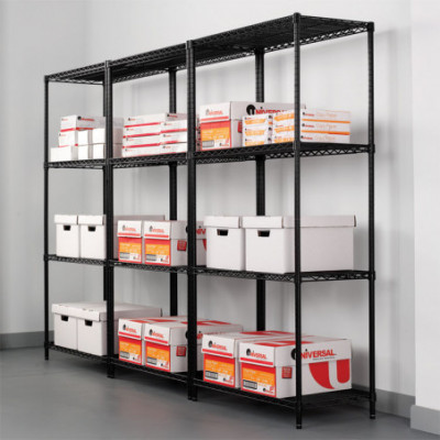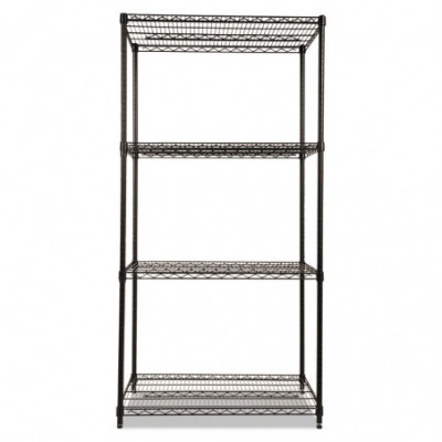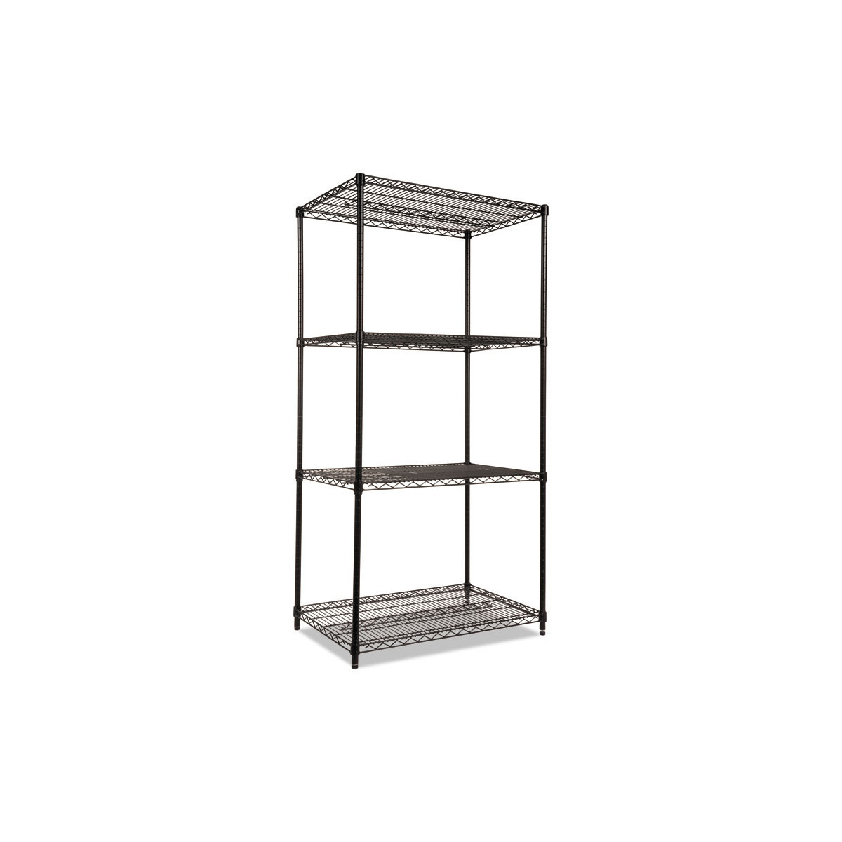 NSF Certified Industrial Four-Shelf Wire Shelving Kit, 36w x 24d x 72h, Black
