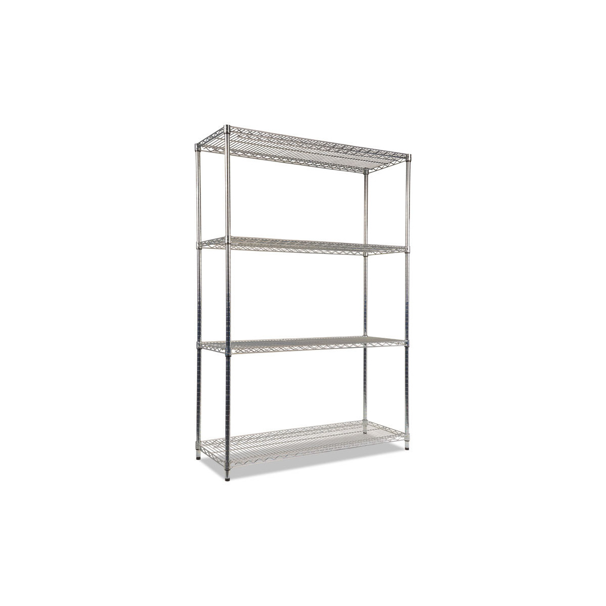 NSF Certified Industrial Four-Shelf Wire Shelving Kit, 48w x 18d x 72h, Silver