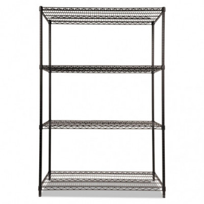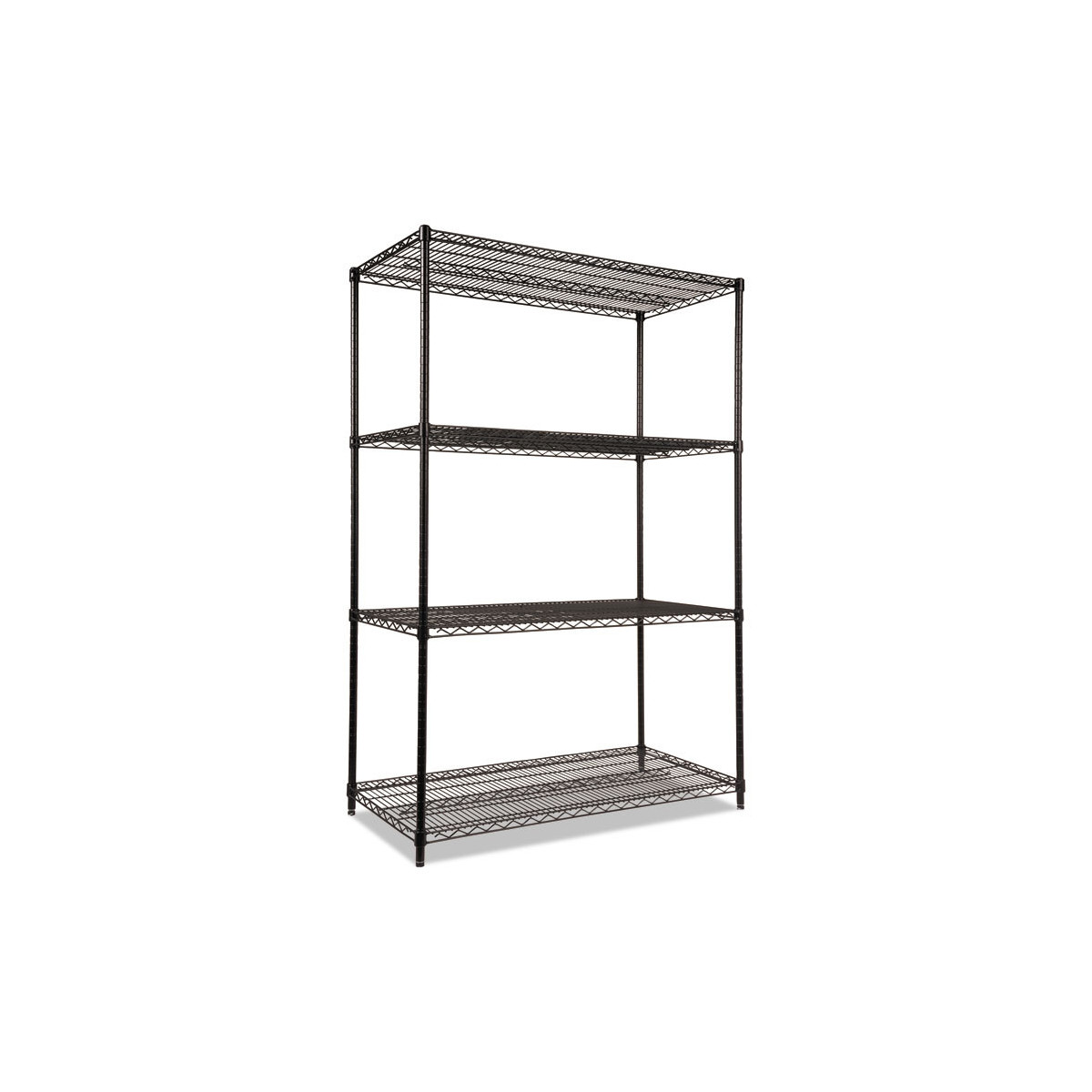 NSF Certified Industrial Four-Shelf Wire Shelving Kit, 48"w x 24"d x 72"h, Black