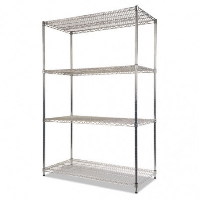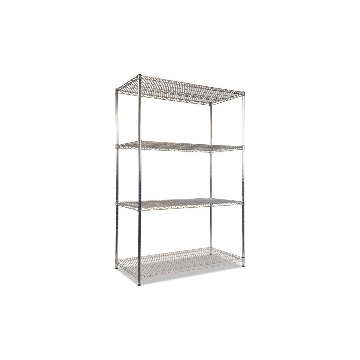 NSF Certified Industrial Four-Shelf Wire Shelving Kit, 48w x 24d x 72h, Silver