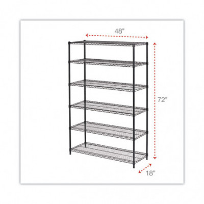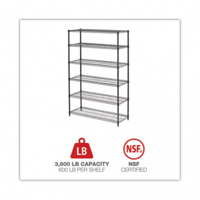 NSF Certified 6-Shelf Wire Shelving Kit, 48w x 18d x 72h, Black Anthracite