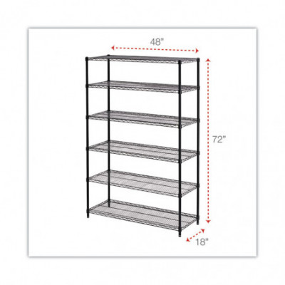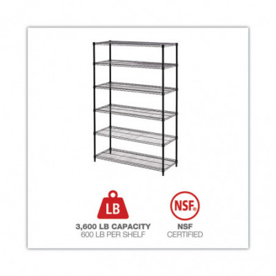 NSF Certified 6-Shelf Wire Shelving Kit, 48w x 18d x 72h, Black