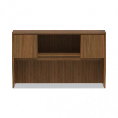 Increase productivity and desktop space with this hutch. Handy compartmentalized overhead storage. Lighting valance and grommets to facilitate task lighting installation. Durable woodgrain laminate is water, scratch, and stain resistant. Fully finished back.