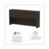 Get organized, increase productivity, and utilize more desktop space with this attractive, sleek, and modern hutch. Handy compartmentalized overhead storage for helping you sort through the clutter and keep important items out of sight, yet within reach. Built-in lighting valance and grommets to facilitate task lighting installation if desired. Durable woodgrain laminate is water, scratch, and stain resistant. Fully finished back for flexible configuration.