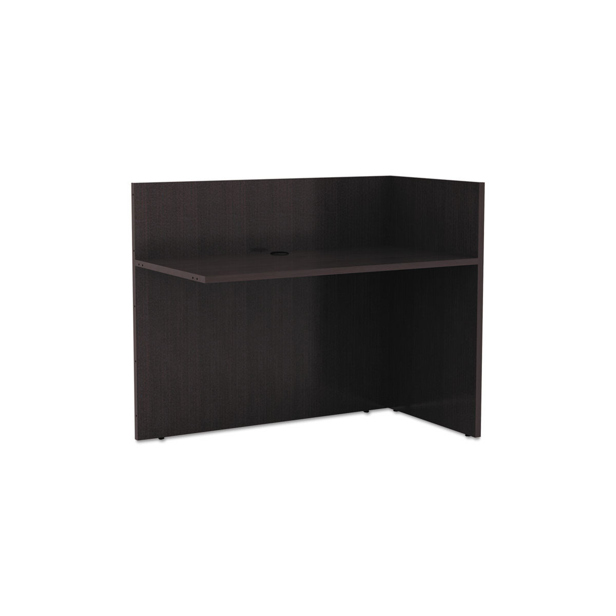 Combine with Reception Desk to create an L-shaped workstation for transacting business or welcoming guests. Commercial-grade laminate worksurface and side panels are water-, scratch- and dent-resistant. Adapts to right- or left-handed configurations. High-sided panels for privacy. Handy grommet for cable and wire management. Protective 3mm edge banding. Leveling glides help compensate for uneven floors.
