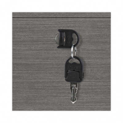 Pedestal file cabinet attaches under worksurface. Sturdy, four-sided drawer construction with separate front panel. Full-extension ball-bearing slides on file drawer. Drawers lock for securing contents. Durable 3 mm edge banding protects against bumps and dings. Two, fold-away safety keys for a slimmer profile are included.