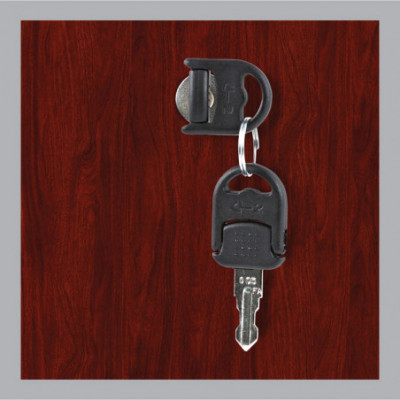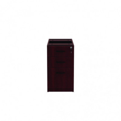Pedestal file cabinet attaches under worksurface. Sturdy, four-sided drawer construction with separate front panel. Full-extension ball-bearing slides on file drawer. Drawers lock for securing contents. Durable 3 mm edge banding protects against bumps and dings. Two, fold-away safety keys for a slimmer profile are included.