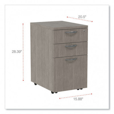Alera Valencia Series Mobile Pedestal File, Left/Right, 3-Drawer: Box/Box/File, Legal/Letter, Gray, 15.88 x 20.5 x 28.39