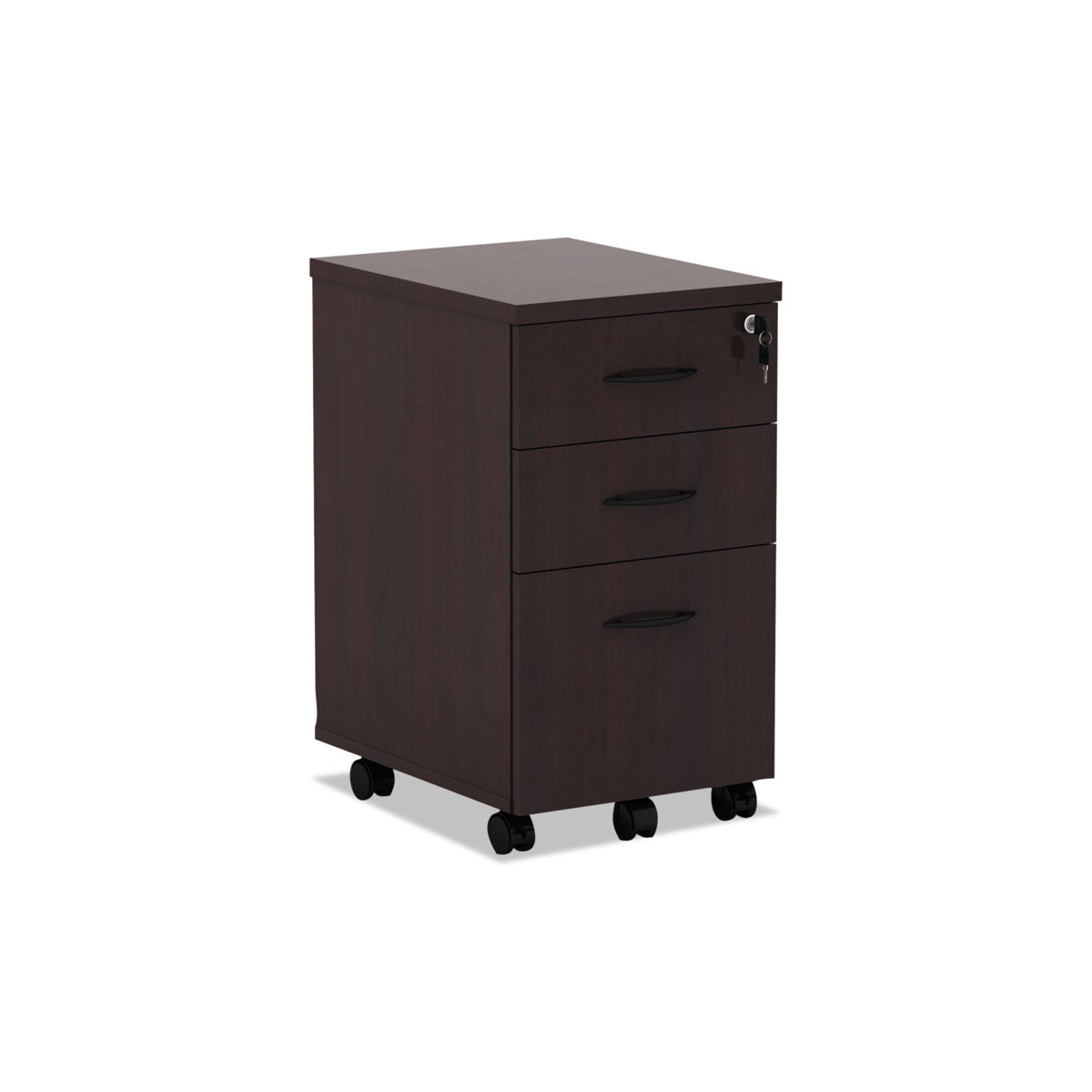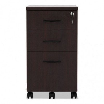 Mobile file cabinet is ready to go anywhere you need it to go. Full-extension ball bearing slides on file drawer for easy access to files. The drawers lock for securing contents. Durable 3 mm edge banding protects against bumps and dings. Five casters, two locking. Center caster prevents tipping. Fully assembled, just attach casters. Two, fold-away keys which provide a slimmer profile are included.