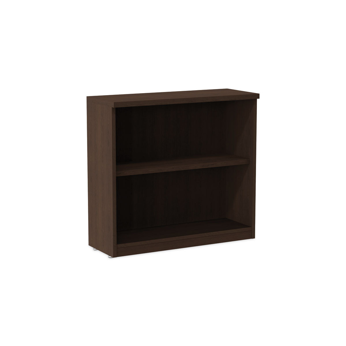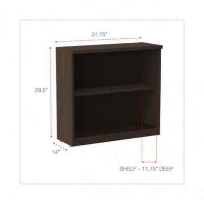 Woodgrain laminate bookcase features a contemporary design that fits perfectly in professional environments. Commercial-grade side panels with protective 3 mm edge banding provide excellent dent and scratch resistance. 11.75" deep shelves accommodate a wide range of materials. Top and bottom shelf are fixed, middle shelf is adjustable. Top panel is 14" deep for door installation. Tight, dowel, and cam-lock assembly provides a clean look while ensuring overall stability.