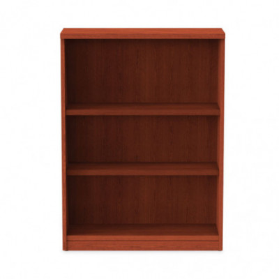 Woodgrain laminate bookcase features a contemporary design that fits perfectly in professional environments. Commercial-grade side panels with protective 3 mm edge banding provide excellent dent and scratch resistance. 11.75" deep shelves accommodate a wide range of materials. Top and bottom shelf are fixed, middle shelf is adjustable. Top panel is 14" deep for door installation. Tight, dowel, and cam-lock assembly provides a clean look while ensuring overall stability.