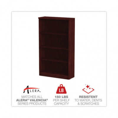 Alera Valencia Series Bookcase, Four-Shelf, 31.75w x 14d x 54.88h, Mahogany