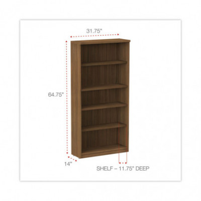 Alera Valencia Series Bookcase, Five-Shelf, 31.75w x 14d x 64.75h, Modern Walnut