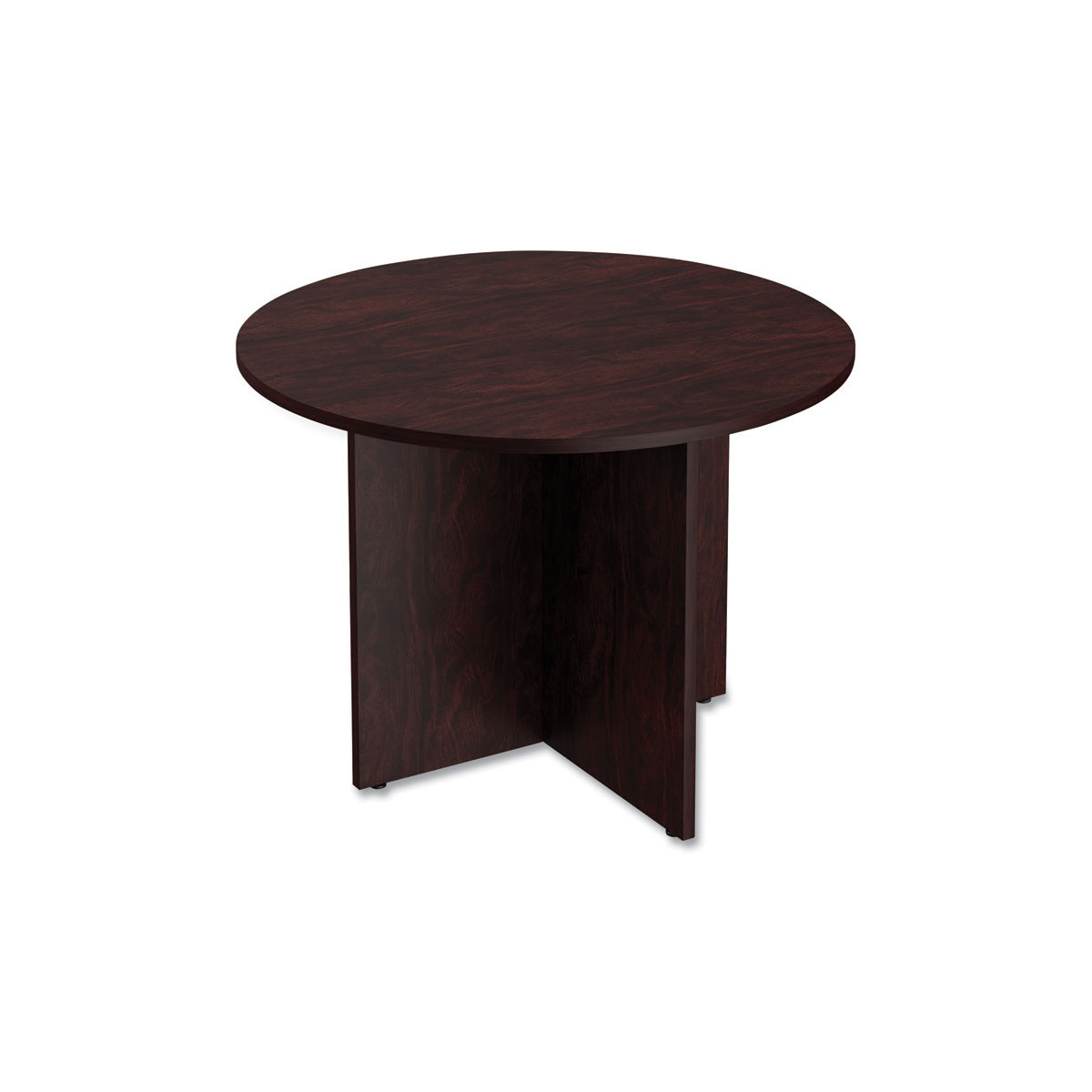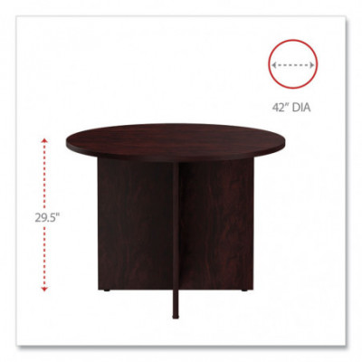 A popular table style adds extra work surfaces for quick-huddle setups or any conference room. Commercial-grade, 1" thick laminate top is water, scratch, and dent-resistant. The durable table features a protective 3 mm edge banding. The straight leg X-base takes up minimal space to maximize leg room and has leveling glides to help compensate for uneven floors. Matches Alera Valencia Series modular desking components.