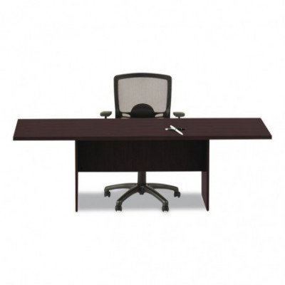 Classic rectangular conference tables work for meetings, breakrooms, or quick-huddles. Commercial-grade, 1.25" thick laminate top is water-, scratch-, and dent-resistant. Protective 3 mm edge banding helps prevent nicks. Modesty panel for privacy and stability. Leveling glides help compensate for uneven floors. Matches Alera Valencia desking components.