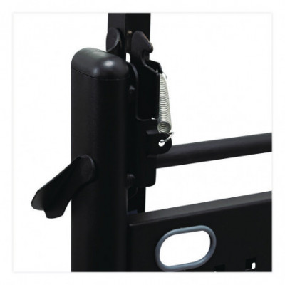Black powder-coated steel resists chipping and scratching, includes detachable modesty panel. Includes four locking casters for mobility and four glides for fixed usage. Integrated cable management channels and flip down lever to fold and nest tables. Top and Base sold and shipped separately—ORDER BOTH.