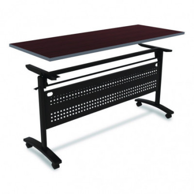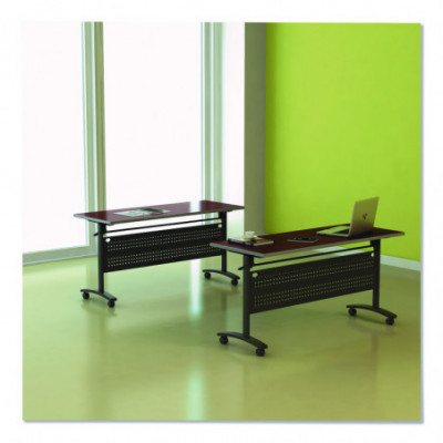 Perfect for modular workspaces, this flip-training table base features a flip?down nesting design for efficient storage, integrated cable-management channels, and a detachable modesty panel. Locking casters allow for safe mobility or glide for fixed placement. Constructed of powder?coated steel, it resists chipping and scratching. Top and Base sold and shipped separately—ORDER BOTH.