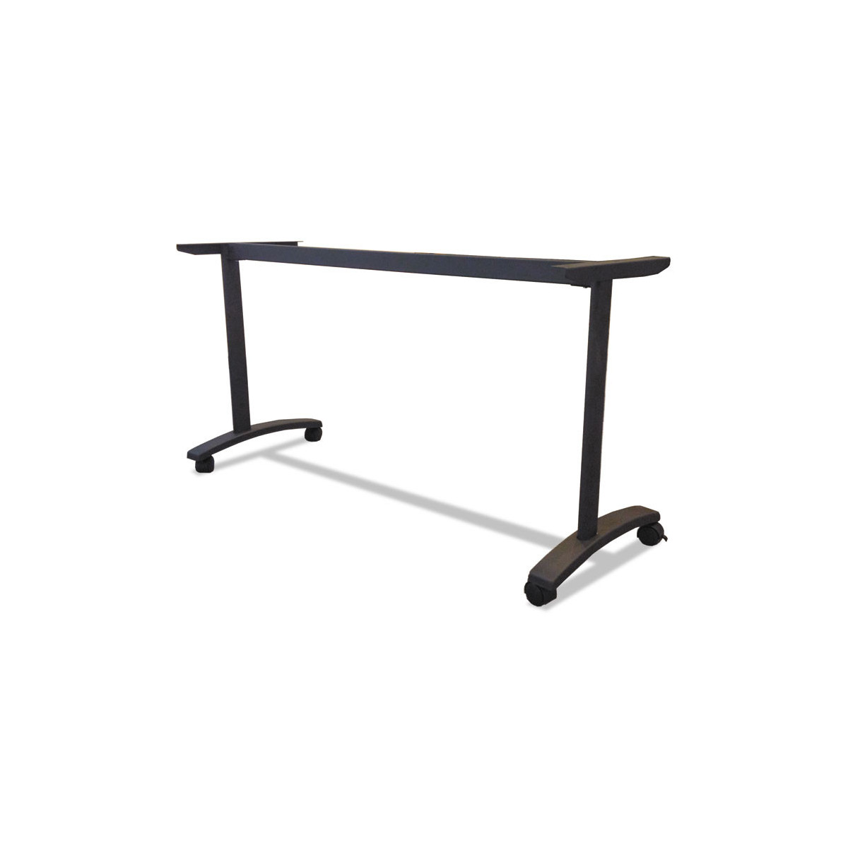 Durable, powder-coated steel T-leg table base resists chipping and scratching. Four locking casters for mobility or four glides for fixed usage. 29" high with top. Top and Base sold and shipped separately-ORDER BOTH.