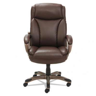 Coil spring cushioned seat provides long-lasting, mattress-like comfort. Ergonomic side bolsters for added support. Adjustable lumbar support for optimal back positioning. Integrated cushioned leather headrest and padded bonded leather armrests. Five-star base with protective foot zones. Generously cushioned waterfall seat reduces pressure points at the back of the knee.