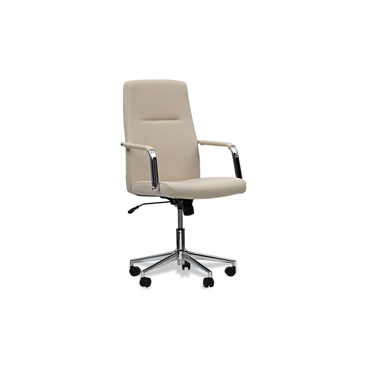 Update your home or office space with this stylish leather task chair. Clean edge design with leather seat and back provides a contemporary look. Lever adjustable seat height, tilt tension, and tilt lock help you find the right position for working or lounging. Fixed, chrome arms with leather padding for added support. Chrome base with five casters provides mobility. Sleek and modern design coordinates with most home or office décor. Supports up to 275 lbs. Some assembly required.